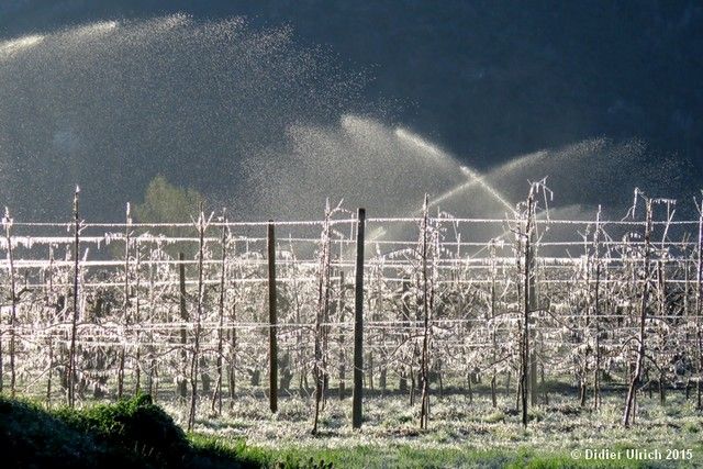Le passage de l'eau de l'état liquide à l'état solide va dégager des calories qui permettront de maintenir une ambiance de 0°. Une installation bien dimensionnée vous permet de protéger vos cultures jusqu'à -7°.
