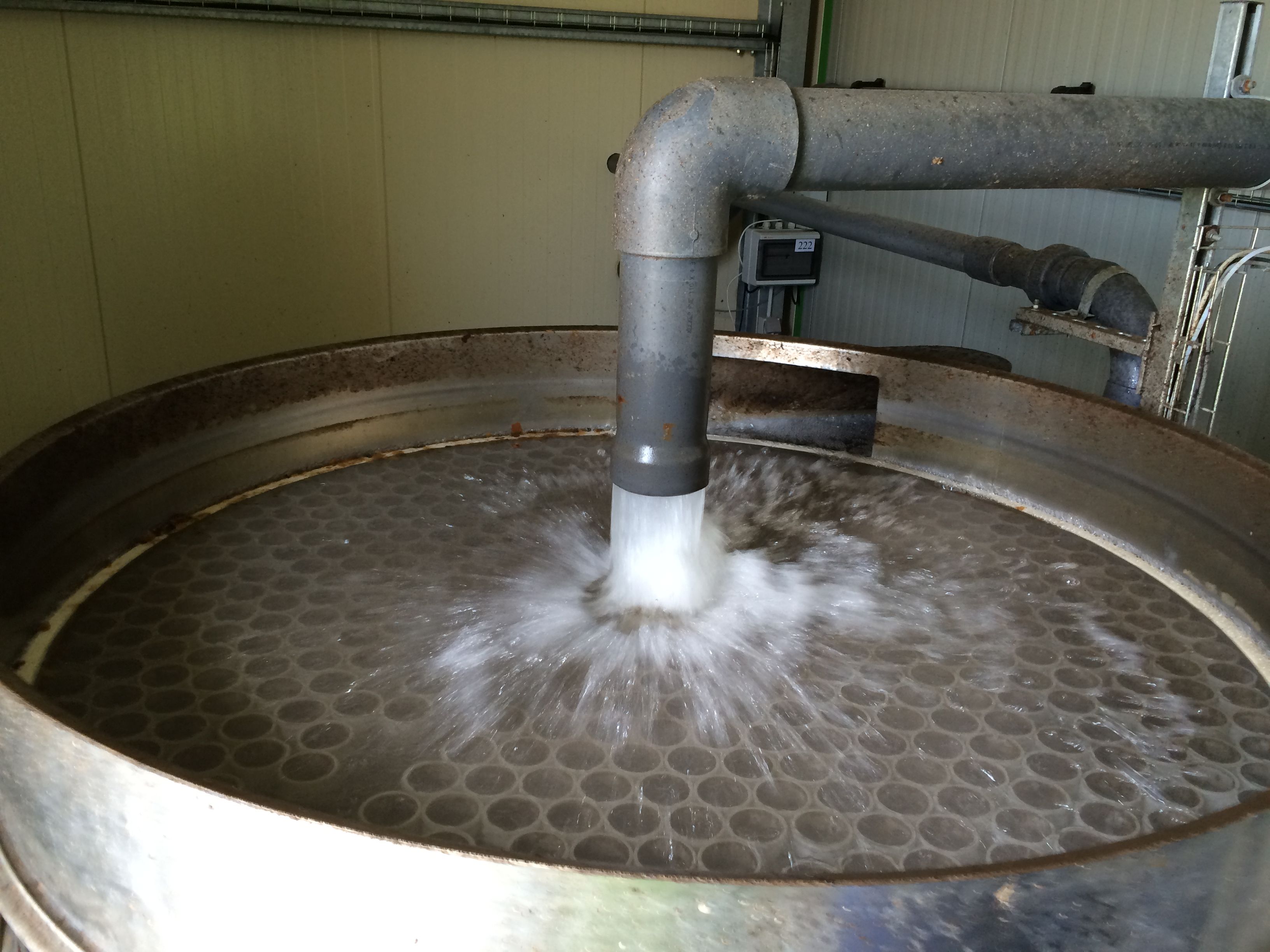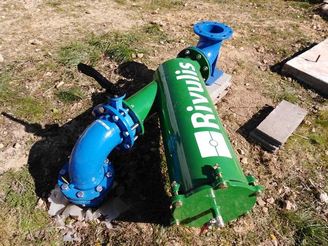 Aquaval utilise des pompes à larges passages (80 à 100mm) pour retirer de l'eau un maximum de déchets (pommes, feuilles, étiquettes). L'utilisation d'un premier seuil de filtration apporte beaucoup d'efficience à l'ensemble du process.